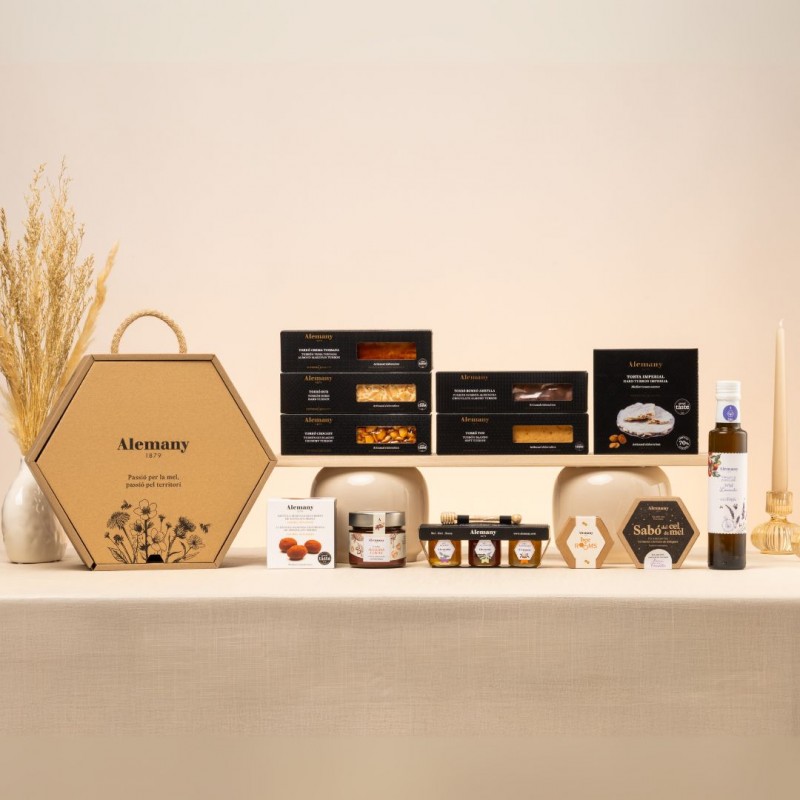 En aquest lot de Nadal hi ha tots els productes imprescindibles per a aquestes dates, torró i alguna gormanderia, però també una selecció de les nostres mels.