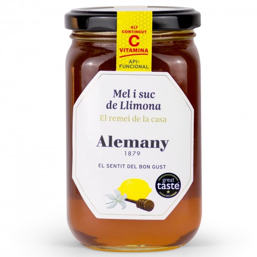La mel de flors amb suc de llimona i vitamina C Alemany és una mel dolça i de gust equilibrat amb les notes àcides de la llimona.