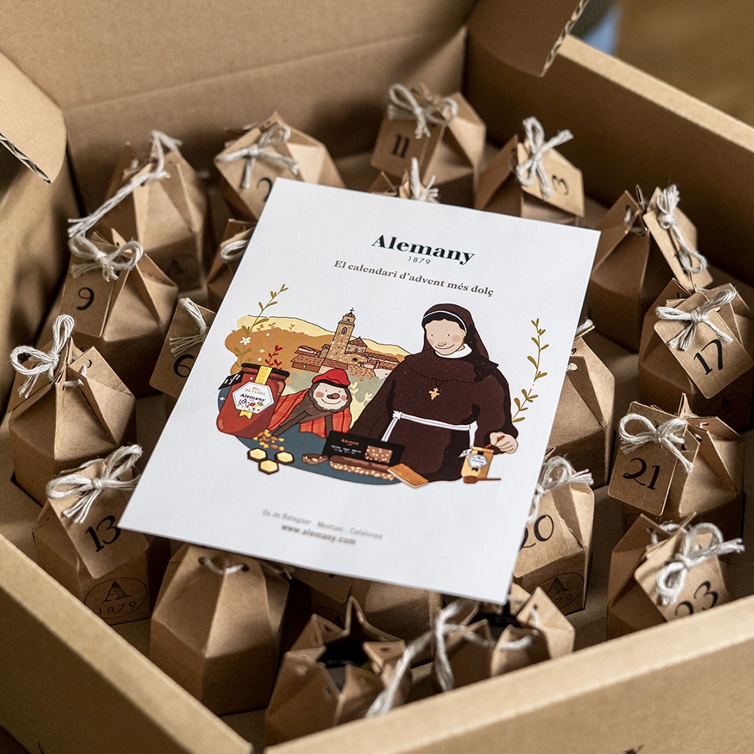 Este calendario ha sido creado con la colaboración de las Hermanas Clarisas de Balaguer y los centros especiales de trabajo de las tierras de Lérida, para que cada detalle lleve detrás una historia de solidaridad y cercanía. Así, en cada bocado, encontrarán no solo la calidad de nuestros productos, sino también el valor humano de las personas que han puesto sus manos y su corazón.