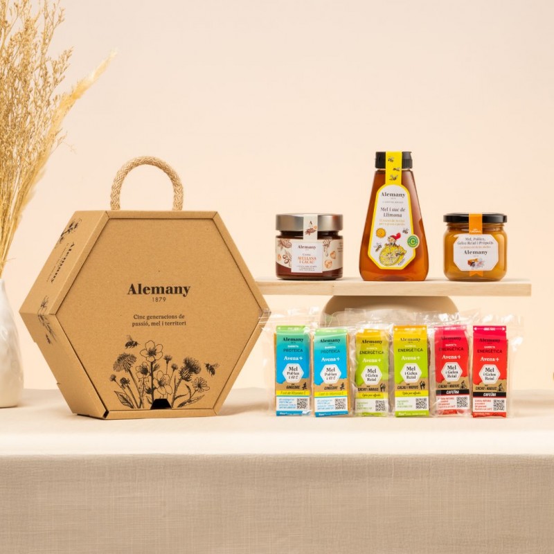 El lote llega dentro de la Caja Alemany, inspirada en las celdas de una colmena de abejas, un símbolo de nuestra experiencia y la profesionalidad de nuestros apicultores de confianza. Haciendo volar la imaginación, quien la recibe puede darle una segunda vida.