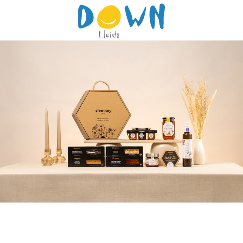 Este lote contiene algunos de nuestros turrones y mieles más valorados en los Great Taste, los premios internacionales de la alimentación gourmet. Un jabón muy especial hecho en colaboración con las monjas clarisas de Balaguer y nuestro gran homenaje a los remedios caseros de la abuela, Miel con zumo de limón. También algunos de nuestros productos más innovadores, como el vinagre de manzana de Lleida con miel de lavanda 100% ecológico, fruto de la colaboración con otras firmas del territorio.