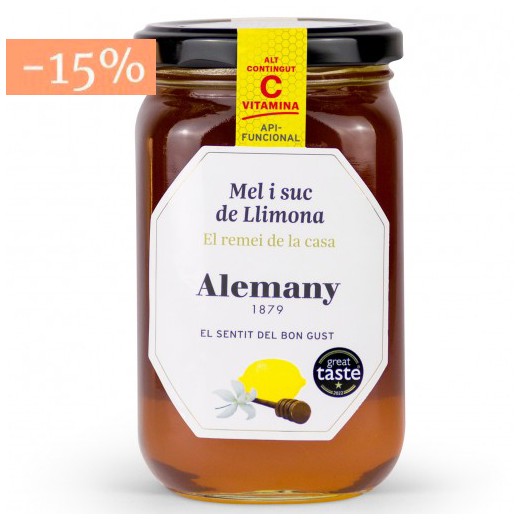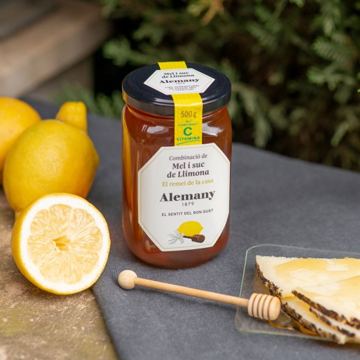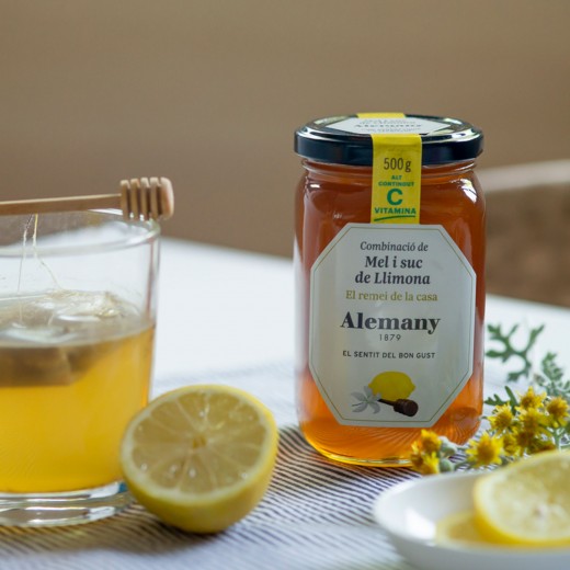 La miel con zumo de limón 500g Alemany es una miel dulce con un equlibrado gusto ácido del limón.